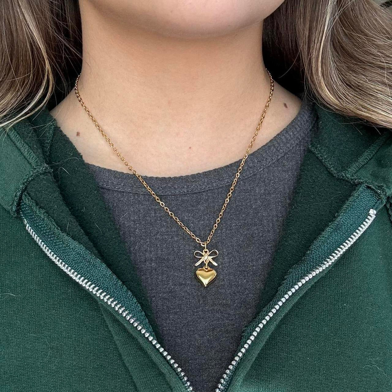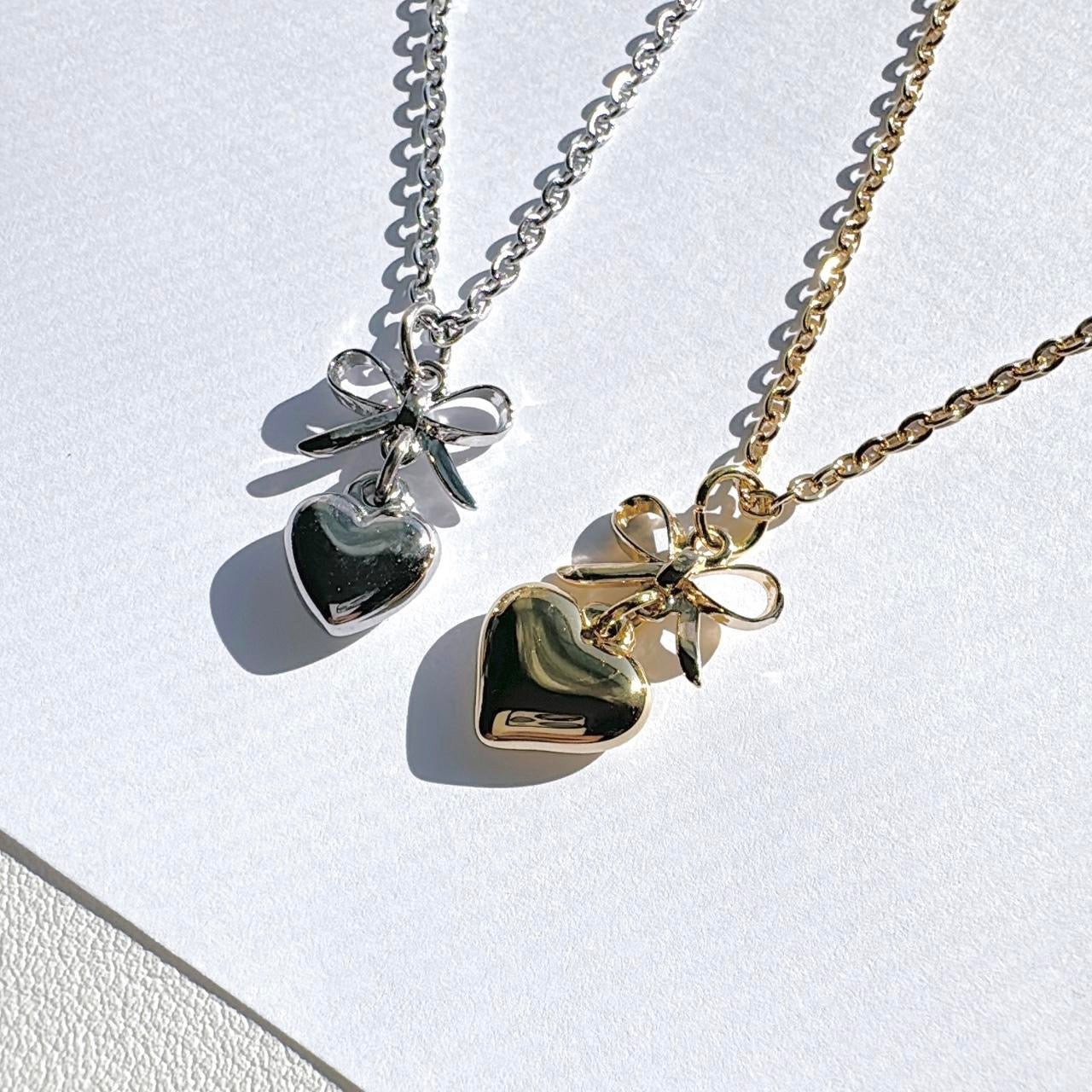 sparkly coquette soft girl aesthetic lolita babygirl white cream bow sterling silver non tarnish handmade unique made to order cottage core fairy core ballerina core off duty model bella hadid #coquette #bow #heart #necklace #hypoallergenic ribbon gold necklace dainty coquette bow and heart