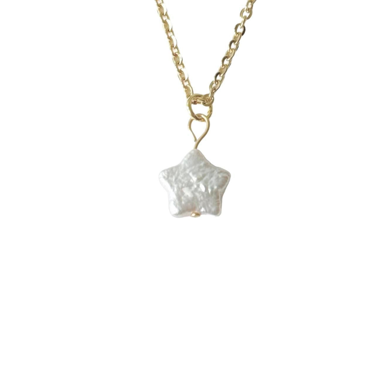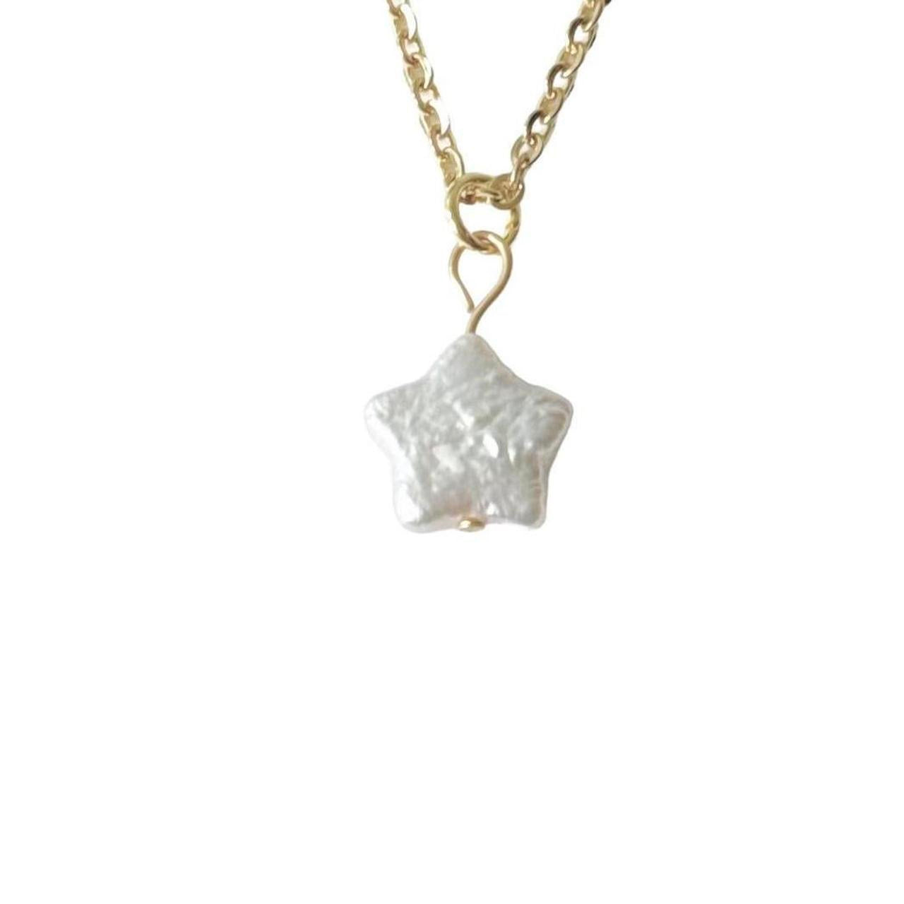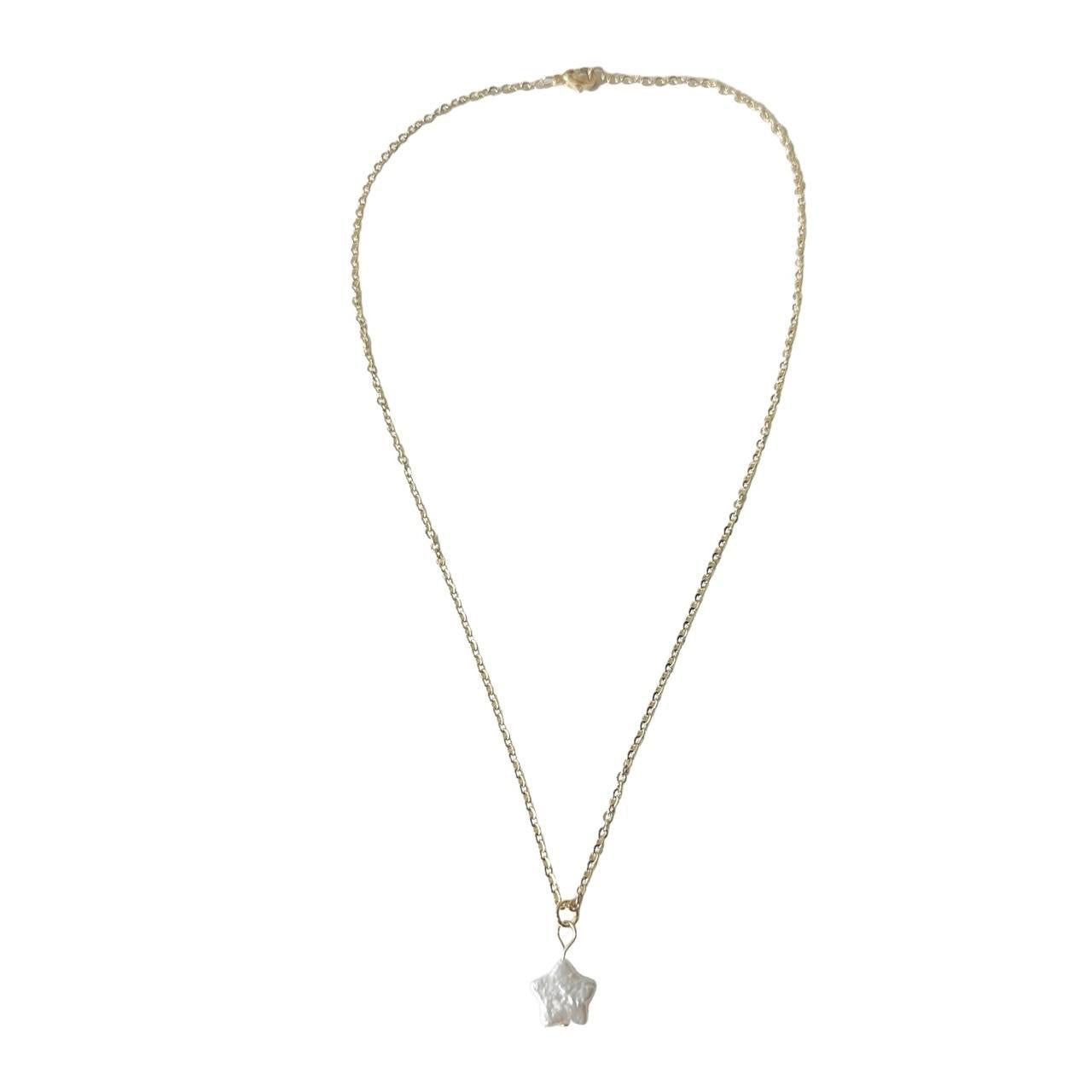 handmade by me! 🐇 18” adjustable dainty gold stainless steel linked chain & natural freshwater pearl star pendant that will NOT tarnish 🖤