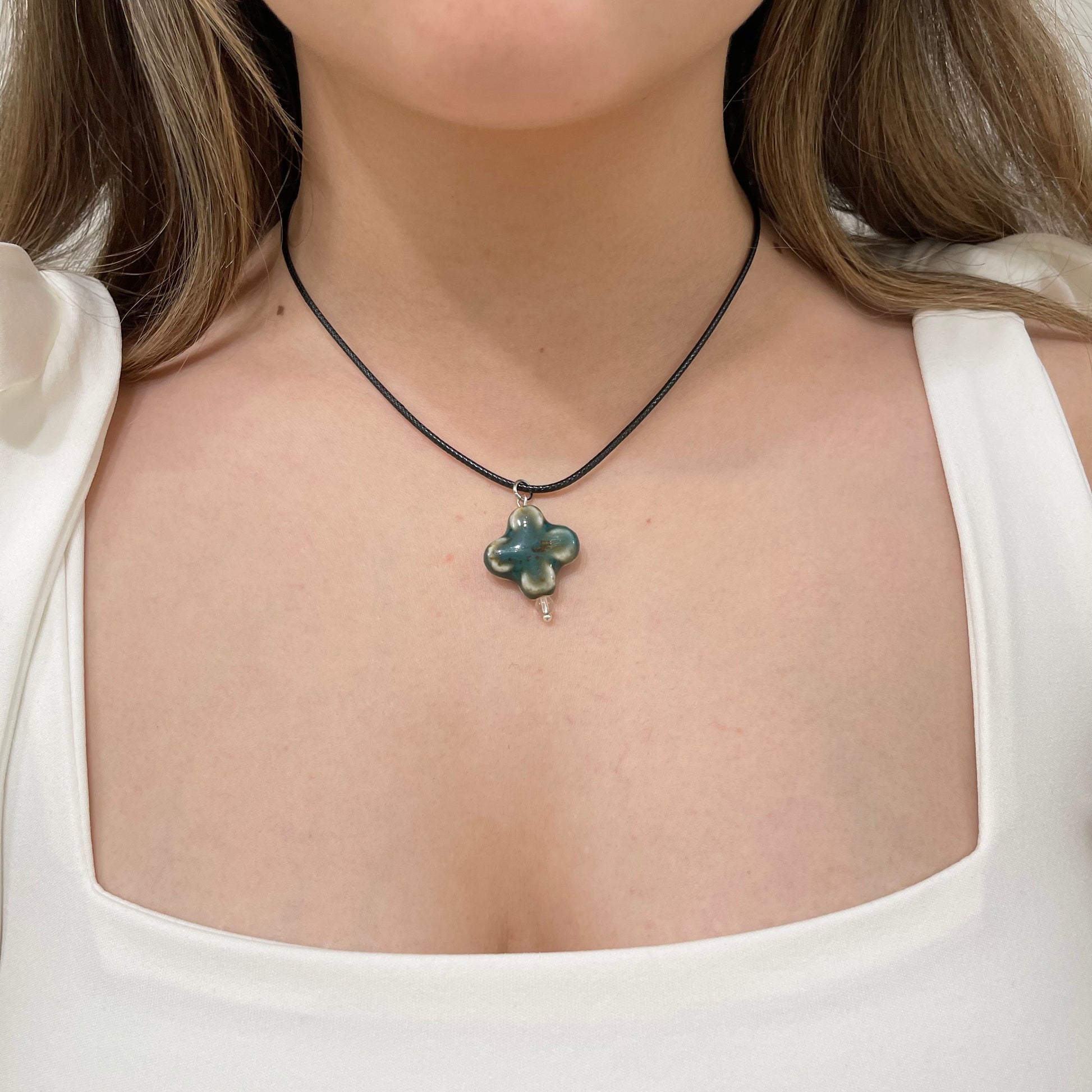 green ceramic clover necklace π